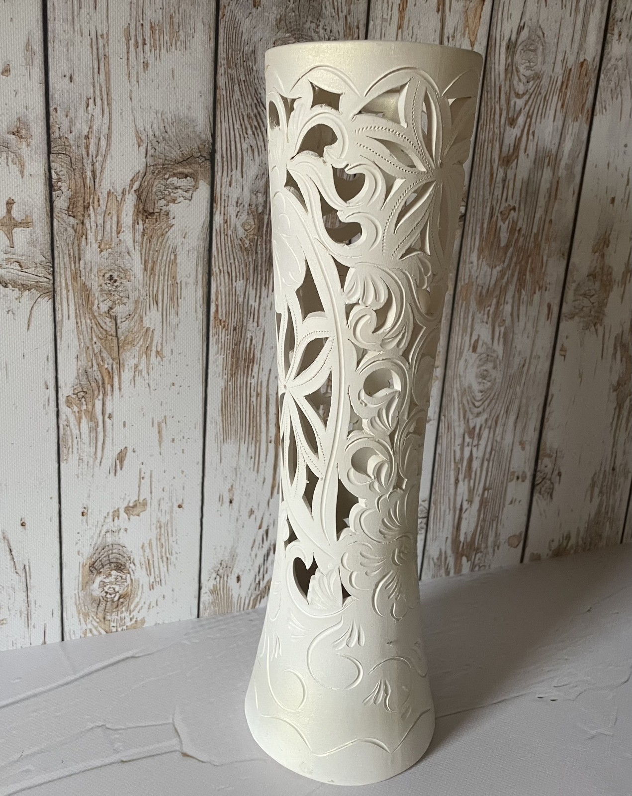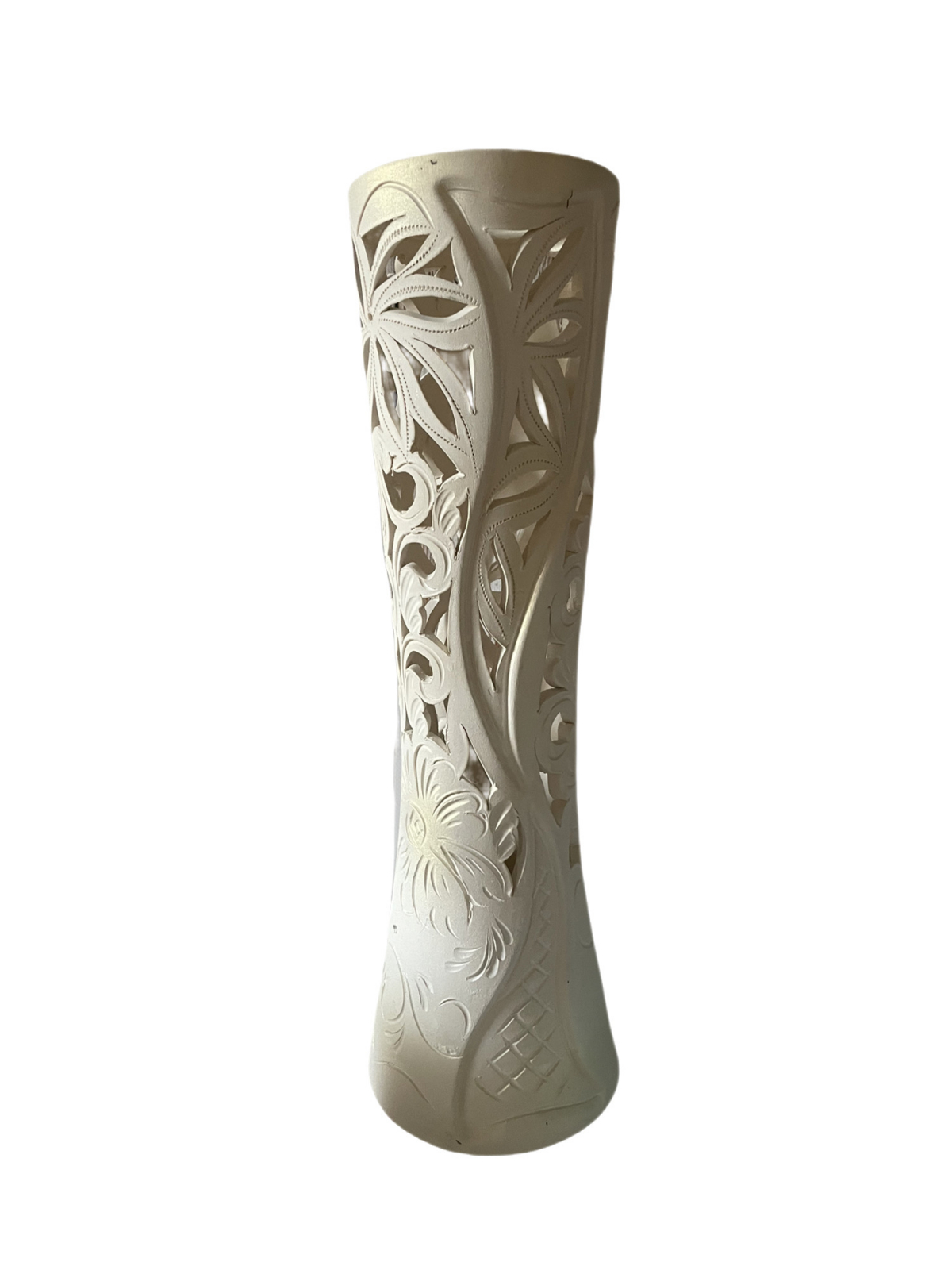 Vază albă, înaltă, model cu găuri. Dimensiune: 40 cm.